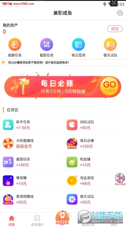 1、做任务赚钱:用户可以在小鱼赚钱的平台上完成各种任务,如注册下载、浏览指定页面、填写表单等,任务简单,奖励丰厚,用户只需按照要求完成任务,就可以获得现金奖励。