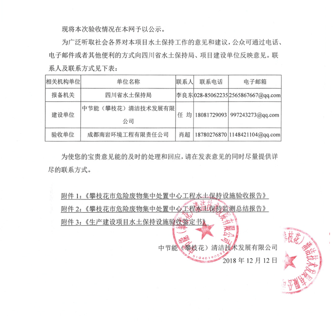 攀枝花市危險廢物集中處置中心工程水土保持設(shè)施自主驗收情況公示