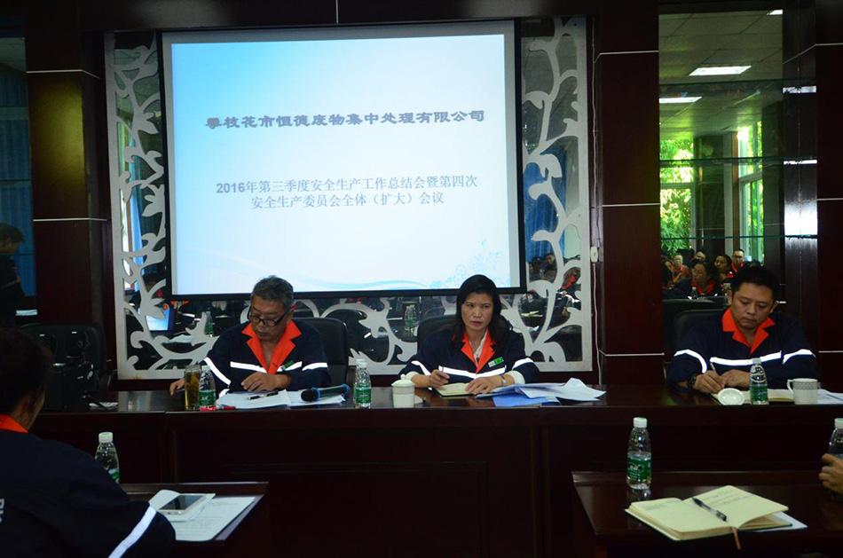2016年11月10日下午,攀枝花市恒德廢物集中處理有限公司召開了第三季度安全生產(chǎn)工作總結(jié)會(huì)暨第四次安委會(huì)(擴(kuò)大)會(huì)議,公司安委會(huì)成員和全體員工參加會(huì)議。 會(huì)議學(xué)習(xí)了中環(huán)集團(tuán)公司鄭朝輝董事長關(guān)于“中國環(huán)保